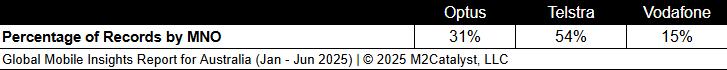 • Vodafone has the greatest connected location percentage at 83%, while the other MNOs range between 69% and 81%.