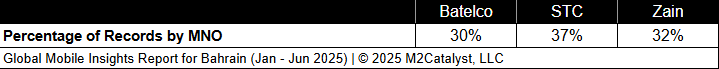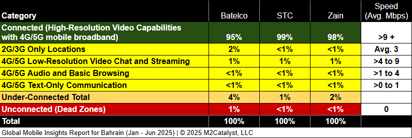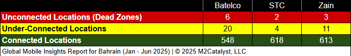 • Batelco has the greatest under-connected location percentage at 4%.
