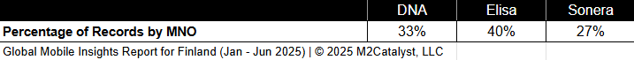 • Sonera has the greatest under-connected location percentage at 6%,while all other MNOs range between 3% and 4%.