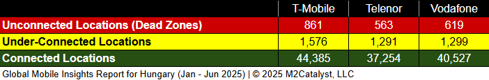 • All MNOs reported a Dead Zone location percentage of <2% in our dataset.