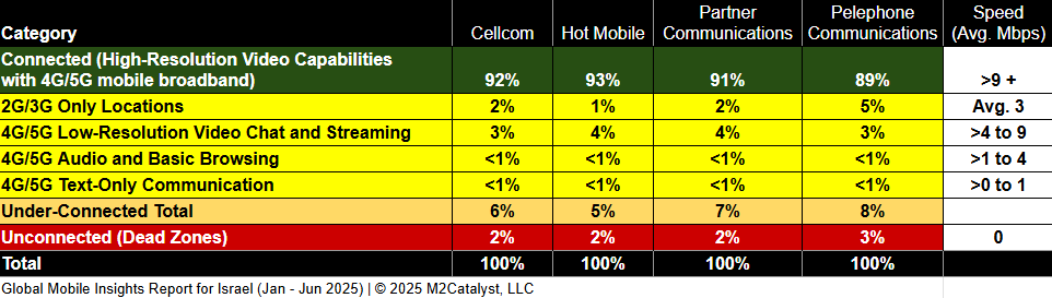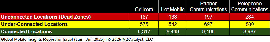 • Pelephone Communications has the greatest under-connected location percentage at 8%.