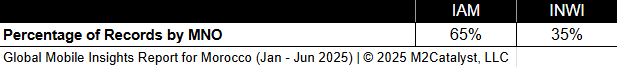 • Both MNOs have relatively similar under-connected location percentages with INWI having the least (without rounding) in our dataset.