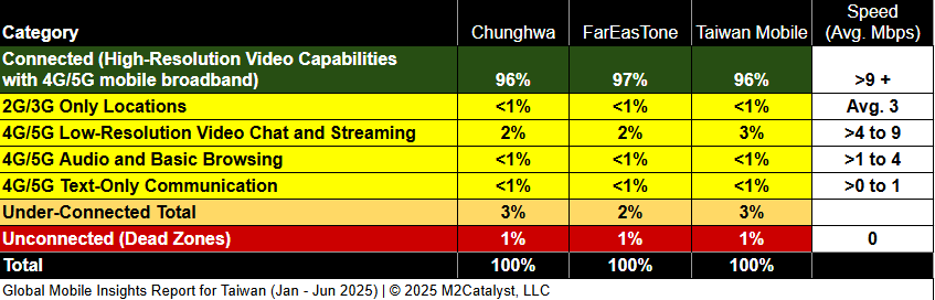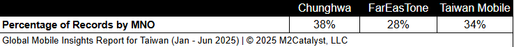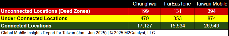 • Taiwan Mobile has the greatest under-connected location percentage at 3% (without rounding).