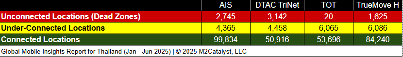 • TOT have the greatest under-connected location percentages each at 10%, while all other MNOsrange between 4%. and 8%.