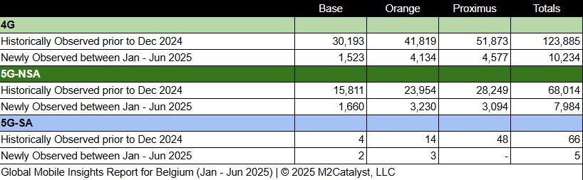• M2’s dataset for the 1st half of 2025 contains 18,223 newly observed 4G/5G mobile broadband Cell IDs. A more in-depth view of the Cell IDs and their associated details by location over time can be visualized on M2's Crowd SiteIntel platform.