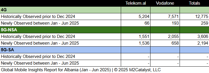 • M2’s dataset for the 1st half of 2025 contains 2,453 newly observed 4G/5G mobile broadband Cell IDs. A more in-depth view of the Cell IDs and their associated details by location over time can be visualized on M2's Crowd SiteIntel platform.