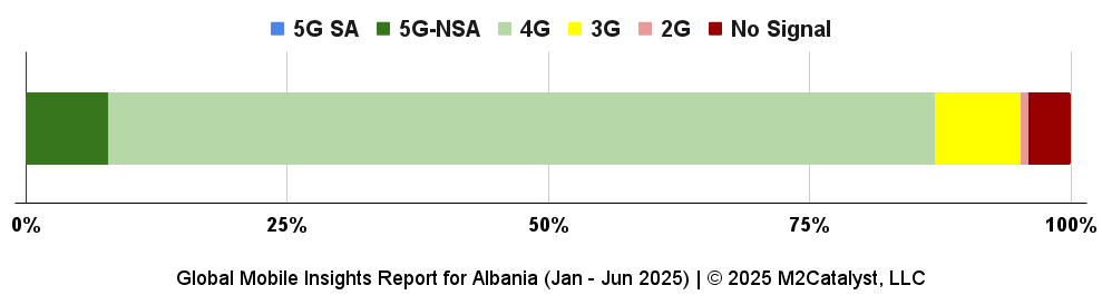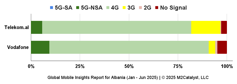 • Telekom.al has 15% of its users reporting on a 3G network while Vodafone has only 3% of their users reporting no signal.