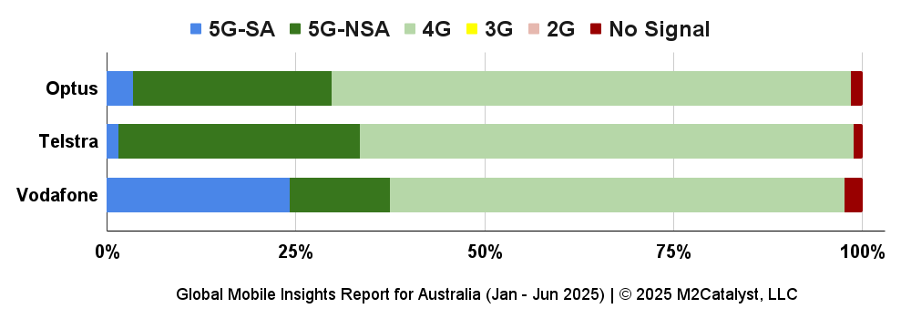 • Vodafone shows 24% of its users reporting on the 5G-SA network.