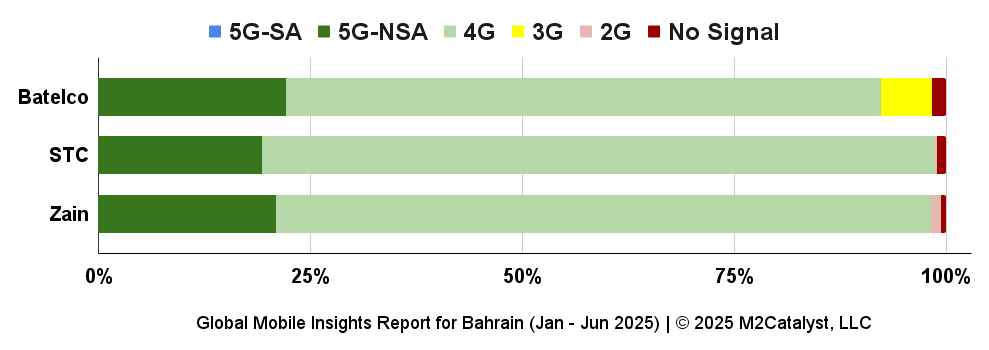 • Batelco shows 6% of users reporting on the 3G network.