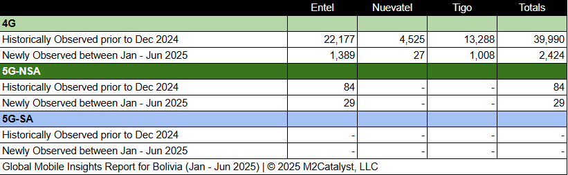 • M2’s dataset for the 1st half of 2025 contains 2,453 newly observed 4G/5G mobile broadband Cell IDs. A more in-depth view of the Cell IDs and their associated details by location over time can be visualized on M2's Crowd SiteIntel platform.