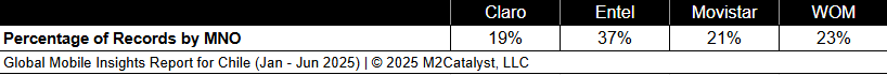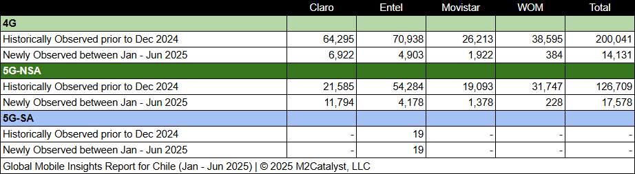 • The number of 5G-NSA Cell IDs is approximately 55% of the newly observed Cell IDs with Claro contributing 67% of those.