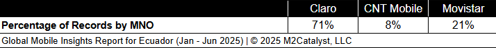 • M2’s dataset for the 1st half of 2025 contains 1,899 newly observed 4G/5G mobile broadband Cell IDs. A more in-depth view of the Cell IDs and their associated details by location over time can be visualized on M2's Crowd SiteIntel platform.