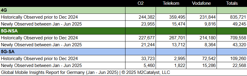 • The number of 5G-SA Cell IDs is approximately 20% of the newly observed Cell IDs with Vodafone contributing over 68% of those.