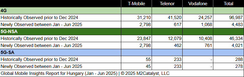 • M2’s dataset for the 1st half of 2025 contains 8,782 newly observed 4G/5G mobile broadband Cell IDs. A more in-depth view of the Cell IDs and their associated details by location over time can be visualized on M2's Crowd SiteIntel platform.
