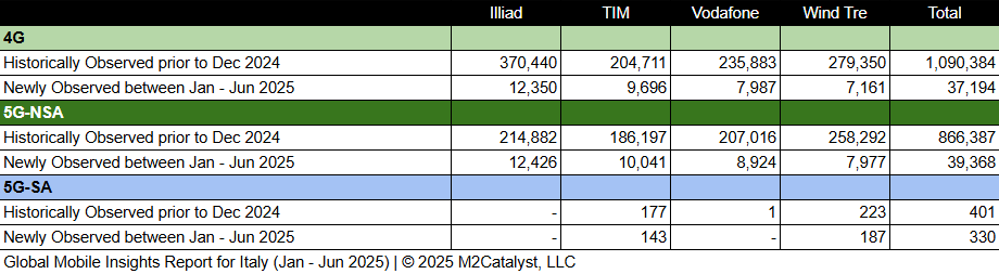 • M2’s dataset for the 1st half of 2025 contains 76,892 newly observed 4G/5G mobile broadband Cell IDs. A more in-depth view of the Cell IDs and their associated details by location over time can be visualized on M2's Crowd SiteIntel platform.
