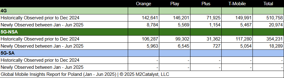 • M2’s dataset for the 1st half of 2025 contains 39,263 newly observed 4G/5G mobile broadband Cell IDs. A more in-depth view of the Cell IDs and their associated details by location over time can be visualized on M2's Crowd SiteIntel platform.