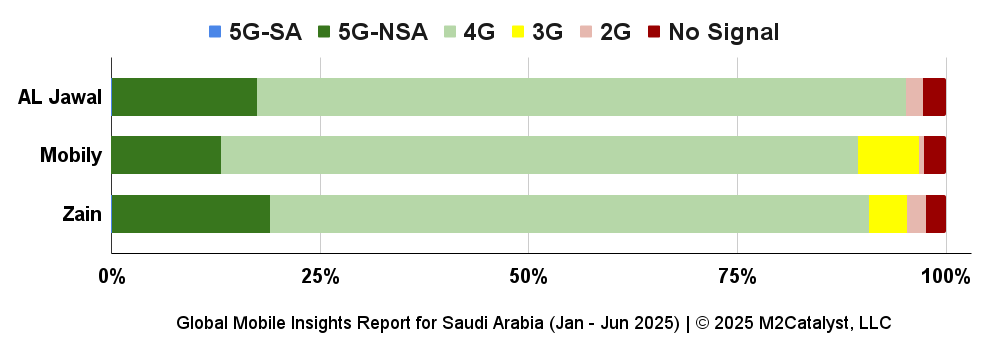 • Al Jawal has over 95% mobile traffic on a network type of 4G or higher.