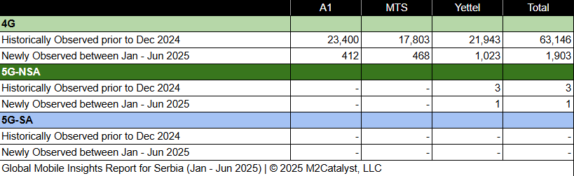 • M2’s dataset for the 1st half of 2025 contains 1,904 newly observed 4G/5G mobile broadband Cell IDs. A more in-depth view of the Cell IDs and their associated details by location over time can be visualized on M2's Crowd SiteIntel platform.