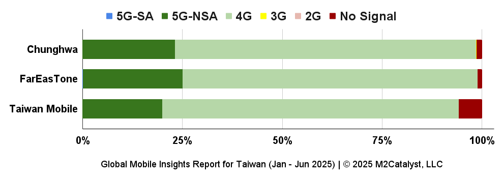 • FarEasTone has the lowest percentage with 1% of their users reporting no signal while Taiwan Mobile has the greatest percentage with 6% of their users reporting no signal.