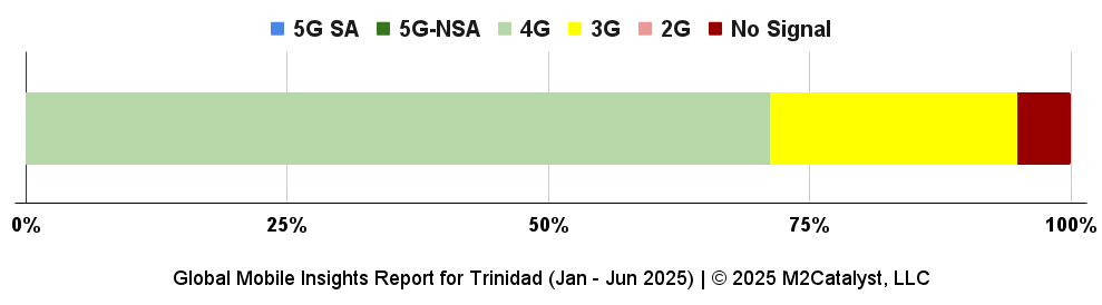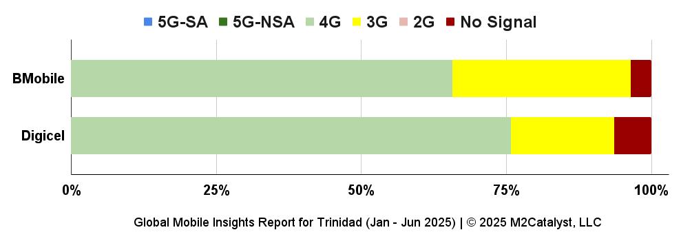 • Digicel shows 76% of their users on 4G, 18% on 3G, and 6% reporting no signal.