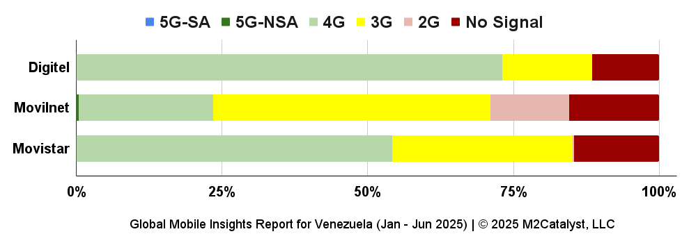 • Movilnet shows 47% of their users reporting on the 3G network and 13% of their users reporting on the 2G network.