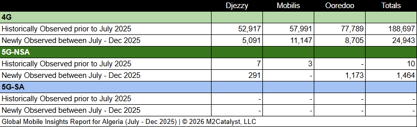 • M2’s dataset for the 2nd half of 2025 contains 26,407 newly observed 4G/5G mobile broadband Cell IDs. A more in-depth view of the Cell IDs and their associated details by location over time can be visualized on M2's Crowd SiteIntel platform.
