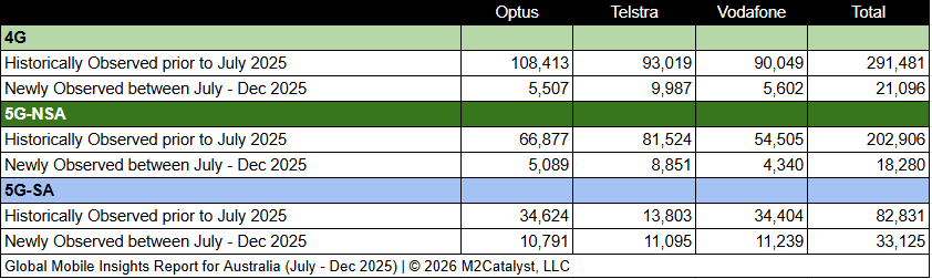 • M2’s dataset for the 2nd half of 2025 contains 72,501 newly observed 4G/5G mobile broadband Cell IDs. A more in-depth view of the Cell IDs and their associated details by location over time can be visualized on M2's Crowd SiteIntel platform.