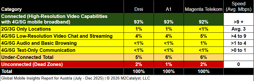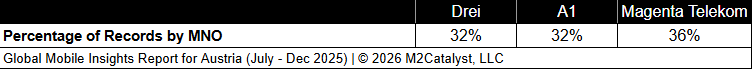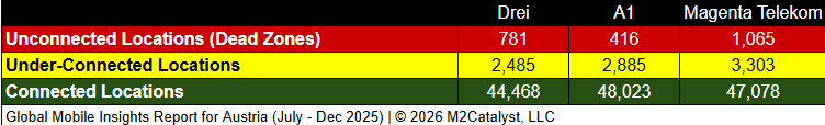• All MNOs have relatively similar under-connected location percentages with Magenta Telekom having the greatest (without rounding) in our dataset.