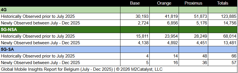 • M2’s dataset for the 2nd half of 2025 contains 28,294 newly observed 4G/5G mobile broadband Cell IDs. A more in-depth view of the Cell IDs and their associated details by location over time can be visualized on M2's Crowd SiteIntel platform.
