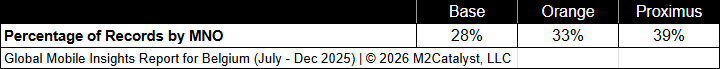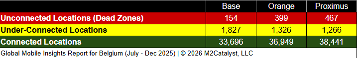 • All MNOs have relatively similar connected location percentages with Proximus having the greatest (without rounding) in our dataset.