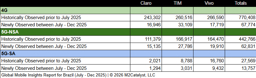 • M2’s dataset for the 2nd half of 2025 contains 144,362 newly observed 4G/5G mobile broadband Cell IDs. A more in-depth view of the Cell IDs and their associated details by location over time can be visualized on M2's Crowd SiteIntel platform.