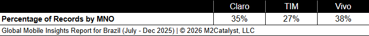 • TIM has the greatest connected location percentage at 36%, while the other MNOs each reported 28% and 30% respectively.