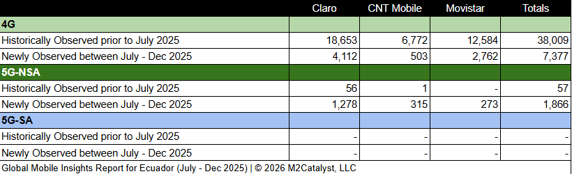 • M2’s dataset for the 2nd half of 2025 contains 9,243 newly observed 4G/5G mobile broadband Cell IDs. A more in-depth view of the Cell IDs and their associated details by location over time can be visualized on M2's Crowd SiteIntel platform.