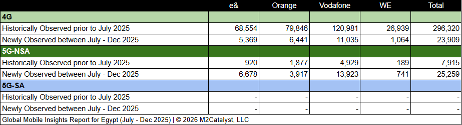 • M2’s dataset for the 2nd half of 2025 contains 49,168 newly observed 4G/5G mobile broadband Cell IDs. A more in-depth view of the Cell IDs and their associated details by location over time can be visualized on M2's Crowd SiteIntel platform.