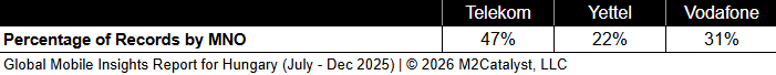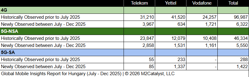 • M2’s dataset for the 2nd half of 2025 contains 13,294 newly observed 4G/5G mobile broadband Cell IDs. A more in-depth view of the Cell IDs and their associated details by location over time can be visualized on M2's Crowd SiteIntel platform.
