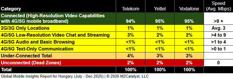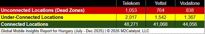 • All MNOs have relatively similar under-connected location percentages with Telekom having the greatest (without rounding).