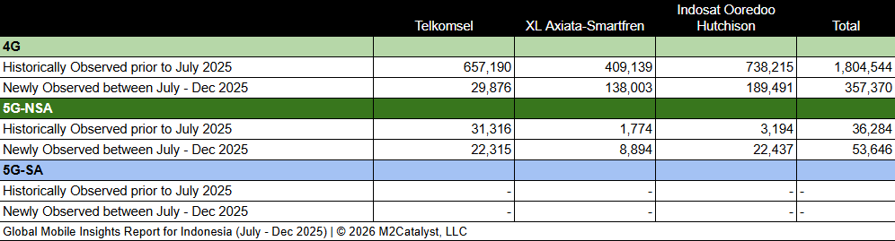 • M2’s dataset for the 2nd half of 2025 contains 411,016 newly observed 4G/5G mobile broadband Cell IDs. A more in-depth view of the Cell IDs and their associated details by location over time can be visualized on M2's Crowd SiteIntel platform.