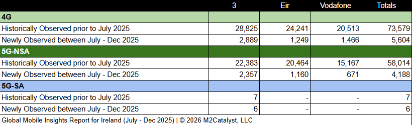 • M2’s dataset for the 2nd half of 2025 contains 9,798 newly observed 4G/5G mobile broadband Cell IDs. A more in-depth view of the Cell IDs and their associated details by location over time can be visualized on M2's Crowd SiteIntel platform.