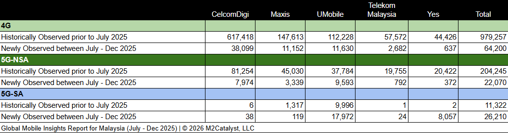 • M2’s dataset for the 2nd half of 2025 contains 112,480 newly observed 4G/5G mobile broadband Cell IDs. A more in-depth view of the Cell IDs and their associated details by location over time can be visualized on M2's Crowd SiteIntel platform.
