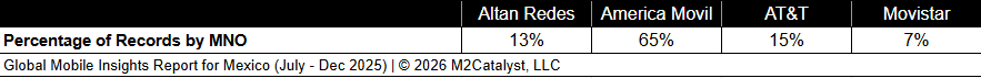 • M2’s dataset for the 2nd half of 2025 contains 54,934 newly observed 4G/5G mobile broadband Cell IDs. A more in-depth view of the Cell IDs and their associated details by location over time can be visualized on M2's Crowd SiteIntel platform.