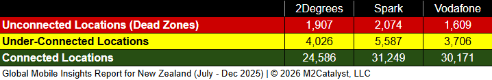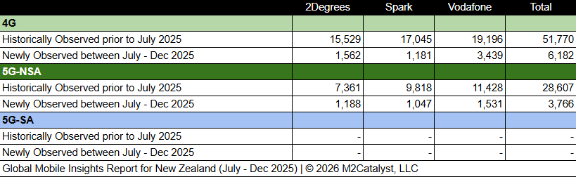 • M2’s dataset for the 2nd half of 2025 contains 9,948 newly observed 4G/5G mobile broadband Cell IDs. A more in-depth view of the Cell IDs and their associated details by location over time can be visualized on M2's Crowd SiteIntel platform.