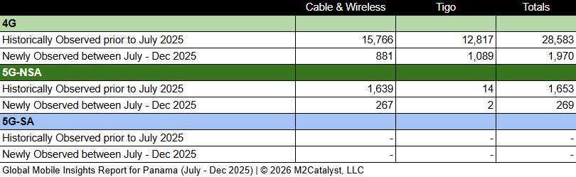 • M2’s dataset for the 2nd half of 2025 contains 2,239 newly observed 4G/5G mobile broadband Cell IDs. A more in-depth view of the Cell IDs and their associated details by location over time can be visualized on M2's Crowd SiteIntel platform.