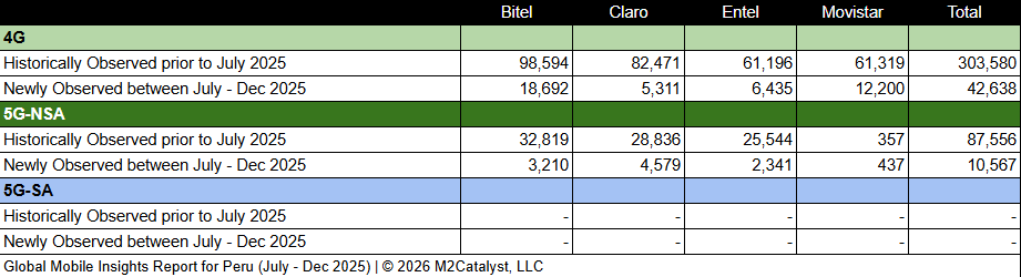 • M2’s dataset for the 2nd half of 2025 contains 53,205 newly observed 4G/5G mobile broadband Cell IDs. A more in-depth view of the Cell IDs and their associated details by location over time can be visualized on M2's Crowd SiteIntel platform.