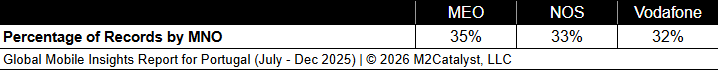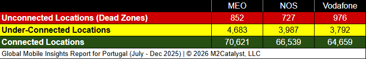• All MNOs have relatively similar Dead Zone location percentages with NOS having the least (without rounding) in our dataset.