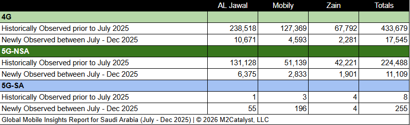 • M2’s dataset for the 2nd half of 2025 contains 69,953 newly observed 4G/5G mobile broadband Cell IDs. A more in-depth view of the Cell IDs and their associated details by location over time can be visualized on M2's Crowd SiteIntel platform.