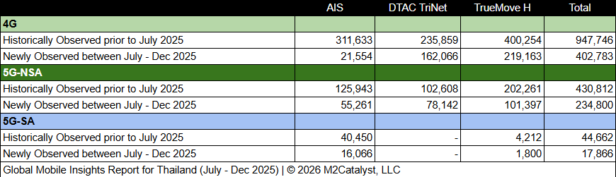 • The number of 5G-SA Cell IDs is approximately 3% of the newly observed Cell IDs with AIS contributing over 90% of those.
