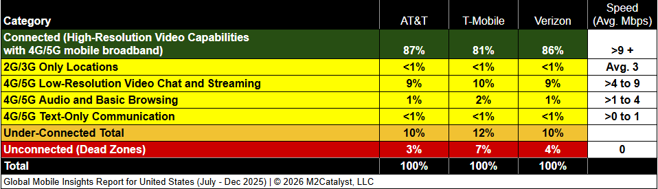 M2Catalyst, LLC also retains full ownership of this M2 Mobile Broadband Quality report, encompassing all intellectual property rights, data, content, graphs, and analysis. Unauthorized quoting, reproduction, distribution, or publication for commercial use is prohibited without M2Catalyst's prior written approval. Journalists wishing to cite information from our reports must provide clear source attribution and secure prior written consent from M2Catalyst. For further information or clarification, please contact us at info@m2catalyst.com.